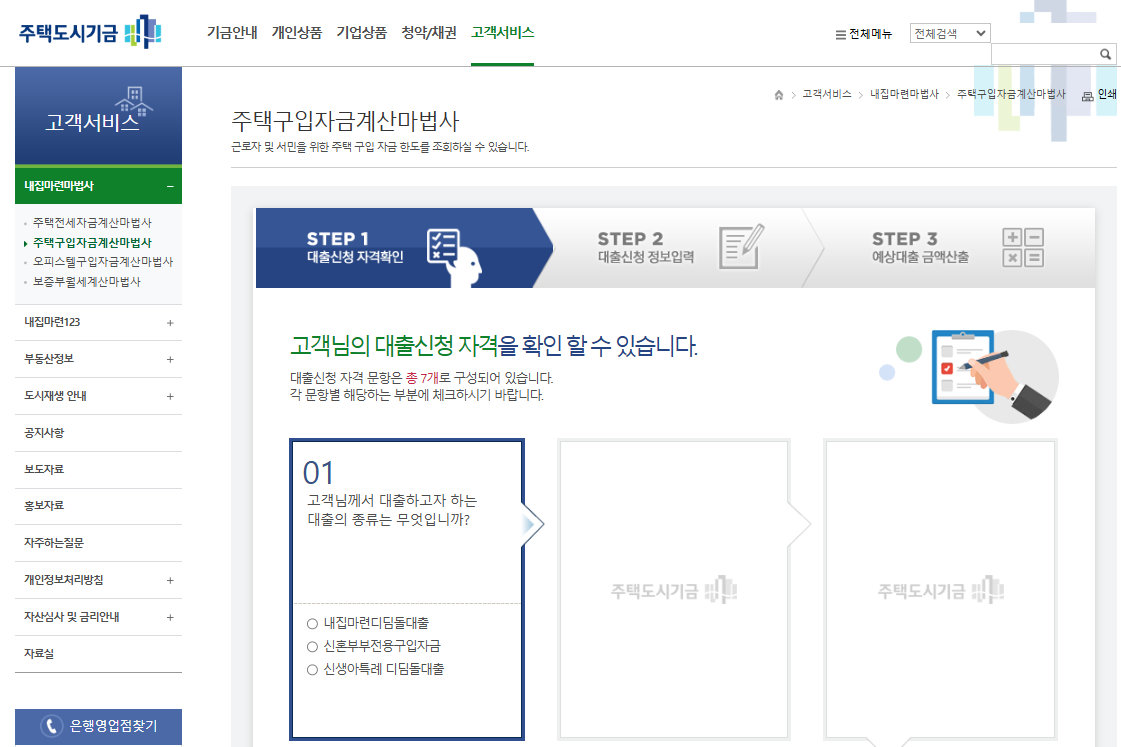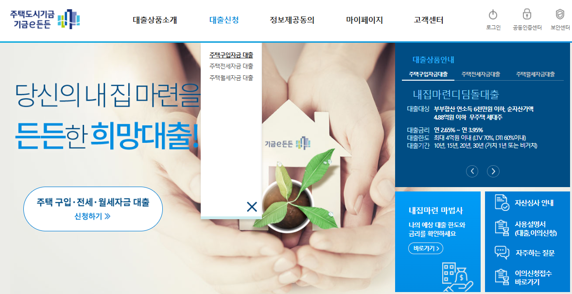 대출을 기금이든든에서 실행 하기전에, 대출이 얼마나 나올지 우대금리는 얼마나 적용될지 "내집마련 마법사"를 통해 미리 예상해 볼수 있습니다