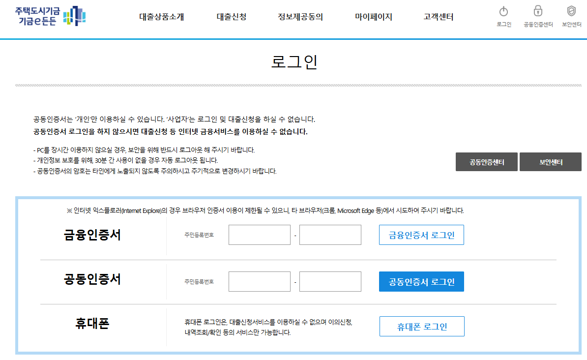 ※ 대출 신청을 진행하기 전 대출 요건에 해당 여부 확인 하시길 바랍니다.